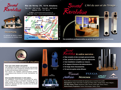 Lentreprise CREA-7 utilise des outils modernes de mise en pages et de montage graphique. La réalisation d'un logo ou d'un prospectus transmet l'images de l'entreprise à ses partenaires. Il est donc nécessaire de soigner le concept et la réalisation graphique. Dans cette optique nous essayons de trouver le meilleurs "look" susceptible de transmettre la bonne "atmosphère" et un message adapté. Ci-dessous quelques exemples. © Jacques-Daniel Rochat |