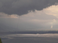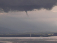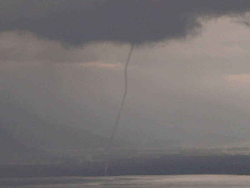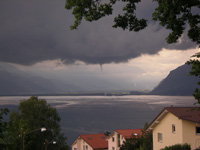 5 juillet 2005, 08h15 Une mini tornade (trombe) se forme sur le lac Léman. Vous pouvez obtenir un agrandissement en cliquant sur les images. © Jacques-Daniel Rochat